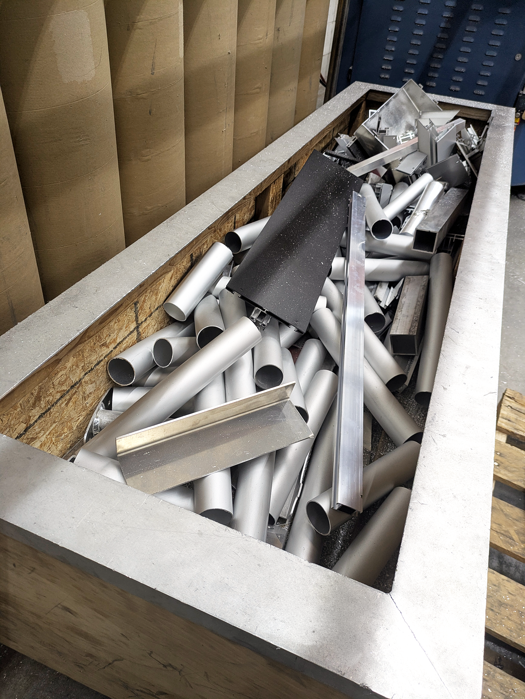 Grand-format printing and metal fabrication naturally generates scrap. That’s reality. But we’ve built a process that makes sure those leftovers still have value.
